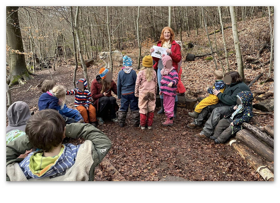 Schöne Impressionen vom Vorlesetermin mit unserem kleinen Comic über ein "Jahr im Leben der Wölfe" in einem Waldkindergarten ( https://www.menschen-fuer-woelfe.com/post/für-kleine-und-große-leseratten-unser-kleiner-wolfscomic .) Mit dabei, wie immer, unsere Wolfshündin Liv, als Wolfsbotschafterin, die sich über die Streicheleinheiten der Kinder wieder sehr gefreut hat.